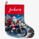 Calcetín Navideño Grande Divertido Santa Claus viajando en motocicleta