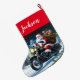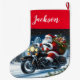 Calcetín Navideño Grande Divertido Santa Claus viajando en motocicleta