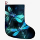 Dos libélulas transparentes, luminosas, turquesas, dibujadas de forma artística sobre el fondo nocturno con algas lacustres luminosas y luciérnagas. Flauta de dragón resplandeciente.