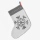 Calcetín Navideño Grande Elegante Faux Silver Gray Snowflake con nombre