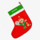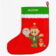 Lindo elfo en media de Navidad roja. La Navidad es un momento maravilloso con Papá Noel, elfos, ángeles y hadas. ¡Feliz Navidad!