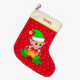 Calcetín Navideño Grande elfo navidad, estrellas, poinsettia y pino sobre r