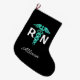 Enfermera inscrita RN Caduceus Médico Personalizado Navidades grandes StockingMosting Su amor por lo que usted hace enfermeras! Este fresco calado está diseñado en la parte delantera con un fondo negro personalizable y el símbolo turquesa caduceus en el centro junto con la "RN" en letras blancas. Personalizado con na!e en letras de caligrafía blanca en la zona inferior.