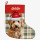 Calcetín Navideño Grande Festividad de goldendoodle con nombre de perro