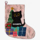 Calcetín Navideño Grande Festividad Feliz Navidad Cute Negro Cat Café Rosa