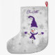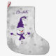 Añada un toque festivo a su manto de chimenea esta temporada navideña con una fiesta Purple Cute Snowman. El diseño de Stocking incluye un lindo muñeco de nieve en un gorra, bufanda y guantes adornados con copos de nieve grises y blancos en un fondo gris con un espacio que puedes añadir tu nombre para la personalización. También hay artículos de regalo y de vacaciones disponibles con este diseño.