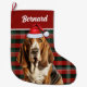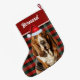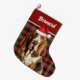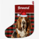 Calcetín Navideño Grande Fiesta festiva con nombre de perro en el lecho de