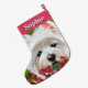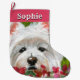 El territorio blanco de la región montañosa occidental y las flores rosadas. Perro occidental asomando un arbusto florido. Sophie. Derechos reservados © 2025 Angi Laframboise. Todos Los Derechos Reservados. Regalos de raza de perros de arte fino para los amantes del perro.