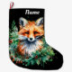 Un zorro rojo se asemeja de ramas huecas acentuadas con bayas rojas brillantes en esta encantadora acuarela de un Navidad Stocking. Perfecto para quien ame los zorros, la naturaleza y la vida salvaje.