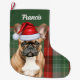 Calcetín Navideño Grande French Bulldog Holiday Plaid and Dogs Name