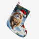 Calcetín Navideño Grande Gato persa sentado en nieve con Gorra Navidad