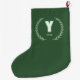Calcetín Navideño Grande Green Laurel Wreath Letter Y Monogram