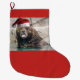 Calcetín Navideño Grande Grizzly Bear con un Gorra de Santa Claus