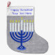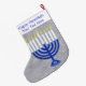 Calcetín Navideño Grande Hanukkah Azul oscuro Menorah Plata Chrismukkah