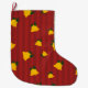 Calcetín Navideño Grande Holiday Red Gold Stripe Bells Christmas