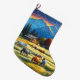 Calcetín Navideño Grande Horses on Farm Wildflower Meadow