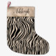 Calcetín Navideño Grande Impresión de cebra negra crema