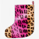 Calcetín Navideño Grande Impresión de leopardo de crema rosado Girly