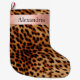 Calcetín Navideño Grande Leopard Animal Rosa Rosa Ribbon Nombre