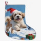 Calcetín Navideño Grande Lhasa Apso postulando en Nieve con Gorra Navidad