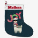 Calcetín Navideño Grande Llama usando un Sombrero de Santa y una alegría de