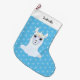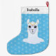 Calcetín Navideño Grande Llama y copos de nieve sobre turquesa