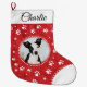 Mascota de color rojo y blanco picado de fotos Este Navidad personalizado lleno de mascotas es Adorable! Sencilla y clásica temática roja y blanca con un lugar especial para tu foto y nombre de mascota favorito. También hay una sala en la parte inferior de la media, donde se puede añadir texto adicional como el año o "¡Feliz Navidad!"