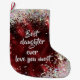 Hijas Navidades Stocking Beautiful stocking con un recordatorio de ‘mejor hija de todos los tiempos' y ‘te amas más' por la hija en tu vida. Blanco con un falso borde purpurina de diamantes. Tipografía falsa de oro purpurina. Cita la Boutique Life de Vikkelynn Designs & Co.