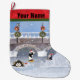 Calcetín Navideño Grande Navidad, pingüinos juguetones en el lago congelado