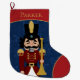 Navidades de Nutcracker personalizados Socking Stocking Trae un capricho a su decoración de vacaciones con esta reserva personalizada de Navidades Nutcracker. Con un clásico soldado de la tribu Nutcracker parado alto en un rico fondo azul tono a tono adornado con hojas y bayas huecas, este caldo capta el espíritu festivo de la temporada. La vibrante bandera roja de la parte superior es un lugar perfecto para la personalización, lo que lo convierte en un apreciado añadido a cualquier mantel con chimenea. Ideal para añadir un toque tradicional pero lúdico a las celebraciones de sus Navidades. Perfecto para regalar unas vacaciones o para crear una experiencia de vacaciones personalizada.