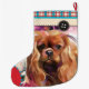 Navidades con Ruby Cavalier rey charles spaniel diseño de arte. floral. Bodega de arte de vacaciones. colores rojo y turquesa. comprobar el patrón tradicional.