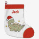 Calcetín Navideño Grande Navidades Dinosaur Santa Hat Nombre Niños