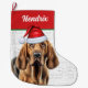 Tan dulce, este Navidad de dos lados tiene un ilustracion acuarela de un Bloodhound vestido de vacaciones y el nombre de su cachorro en ambos lados con un fondo artístico de la palabra.