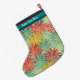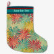 El diseño original de este Navidad de aspecto alegre Stocking retrata una ventisca de flores como Pompoms hecha de oropel, y usando una paleta de colores tropicales de turquesa, espuma marina, amarillo profundo y rojo escarlata que se extendió desde Cuba al sur de Florida y al resto de Estados Unidos durante los años 50 hasta principios de los 60. Con bordes verde azulados oscuros y medios y una banda escarlata, puede personalizar el texto con el nombre del destinatario y también elegir tipo de tejido, tamaño e impresión de 1 o 2 caras.