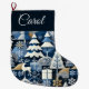 Calcetín Navideño Grande Navy Blue Gold Nordic Christmas Forest Pattern