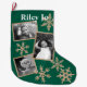 Calcetín Navideño Grande Nombre opcional del copo de nieve rústico verde