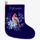 Calcetín Navideño Grande Nombre personalizado Cardinal Redbird Chinoiserie