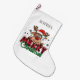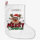 White Merry Christmas Rindeer Nombre personalizado Grandes Navidades Navidades Stocking stocking presenta un bonito diseño de reno emparejado con tipografía marrón de moda para tu nombre personalizado. Incluye el mismo diseño a ambos lados del almacén.