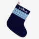 Calcetín Navideño Grande Nombre personalizado rustico de la placa azul