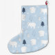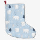 Osos tristemente polares rodeados de árboles de Navidad y copos de nieve en un fondo azul hielo