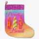 Pretty and vibrant Christmas stocking featuring Paradise Beach Surfboards design - inspired by lyrics to one of our songs. Great for holiday decor, especially for beach houses and warm climates