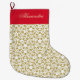 Este diseño lujoso, único, moderno y elegante presenta estrellas de Navidades metálicos falsas y un patrón de copos de nieve en dorado amarillo sobre fondo blanco con su nombre personalizado en topografía elegante. Este Navidad Stocking es un excelente regalo para su familia y amigos.
