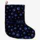 Calcetín Navideño Grande Patrón de la garra de perro purpurina azul Monogra