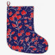 Calcetín Navideño Grande Patrón floral rojo y azul