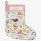 Calcetín Navideño Grande Patrón rosa de niña pequeña con nombre