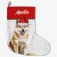 Calcetín Navideño Grande Perro Akita con nombre Woof Background