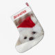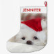 Calcetín Navideño Grande Perro blanco lindo en un Gorra de Navidades rojos