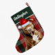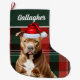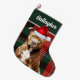 Calcetín Navideño Grande Personalizado Cute Brown Pitbull Dog Red Green Pla