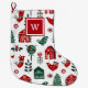 Calcetín Navideño Grande Personalizado Monogramado rojo y verde escandinavo