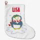 Nuestros adorables pequeños Navidades Penguin, en estos increíbles medias de Navidades. Los nombres se pueden personalizar. Haga clic en personalizar para cambiar el color de fondo si lo desea.